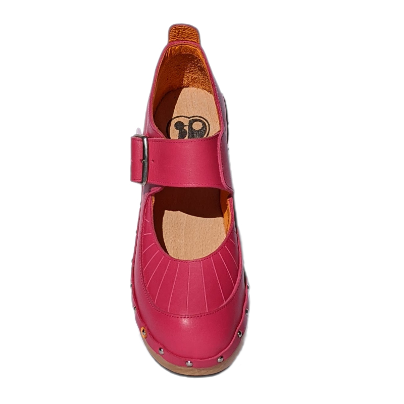 Just like our Flower One Bar in Black, this pretty in Pink clog combines beautiful curves and wide buckle fastening. Just the right shoe to team up with colourful tights or frilly socks, or even a wedding dress !