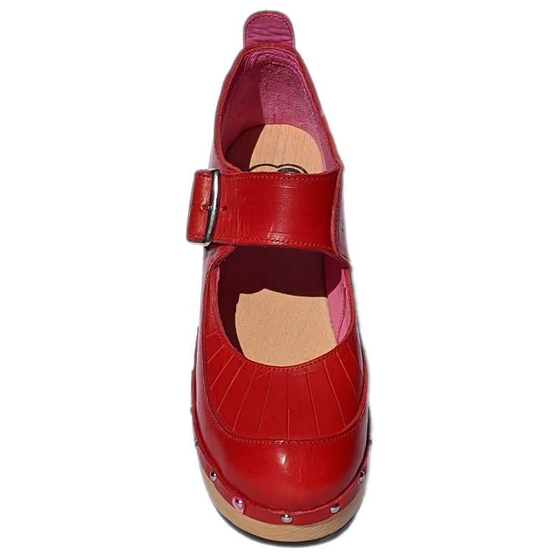 Just like our Flower One Bar in Black, this eye-catching Red clog combines beautiful curves and wide buckle fastening. Just the right shoe to team up with colourful tights or frilly socks.
